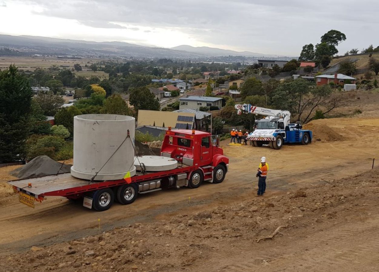The Cormiston Road Subdivision is a high-end private strata housing development located in Riverside, Launceston with a total of 18 townhouses to be built.The project had significant site restrictions including storm water management and on-site detention. The site has an average site gradient of 10% and is a low risk landslide site. The project also had significant complexity with the installation of large precast concrete storm water detention tanks, which required multiple crane lifts and temporary works to complete.